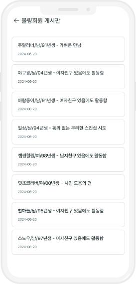 불량 회원 적발 시 불량 회원게시판에 박제돼요.