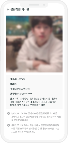 건강하고 안전한 만남을 위해 블데 운영정책에 위배되는 회원은 사양합니다.